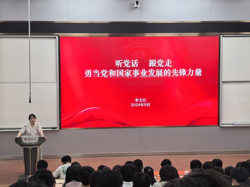 李文江以“听党话·跟党走——勇担党和国家事业发展的先锋力量”为题,围绕科学的理论指导、坚定的理想信念、强大的组织优势、坚实的群众基础、彻底的自我革命五大篇章阐述,鼓励同学们加强理论学习,坚定理想信念,践行初心使命,强化责任担当,端正入党动机,发挥带头作用,努力成为有理想、敢担当、能吃苦、肯奋斗的新时代好青年,创造条件争取早日加入中国共产党!