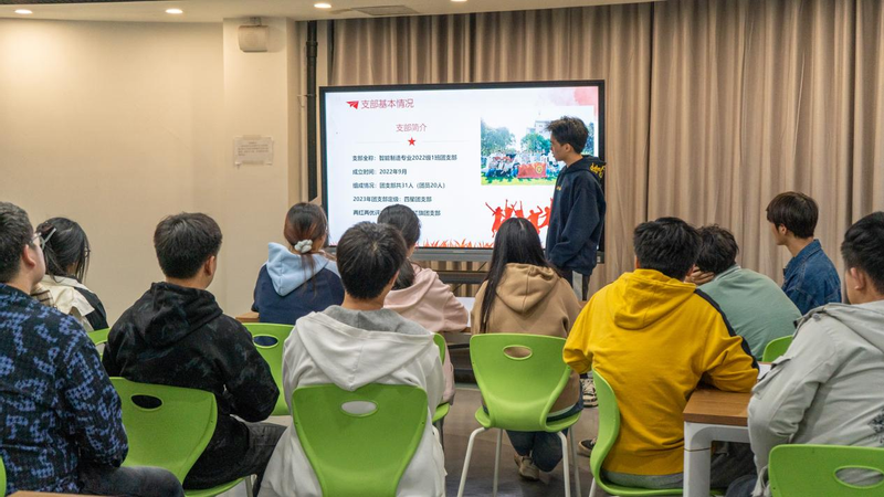 智能制造221班徐绩作团支部建设主题分享。通过将主题团日与心理班会相结合,以mbti性格测试做肖像刻画为切入点,通过用青年人喜闻乐见、贴心有感、走心入脑的方式调动了学生参与的积极性与主动性,从而更好地认识自己、实现自己、奉献自己,为其他班级在团支部建设等方面提供新思路。智能制造221班刘航作职业生涯规划与竞赛主题分享。他认为在大学阶段参与学科竞赛是可以尝试的充满希望与挑战的新道路,是一个提升自己能力的机会,有艰辛,但更多的是成长和收获。机器人222刘杨以“启智童心·共创未来”机器人科普志愿服务项目探索为主题,将志愿服务活动与自身专业相结合,通过双向育人的模式,实现共同成长,与大家分享自己的收获与体会。