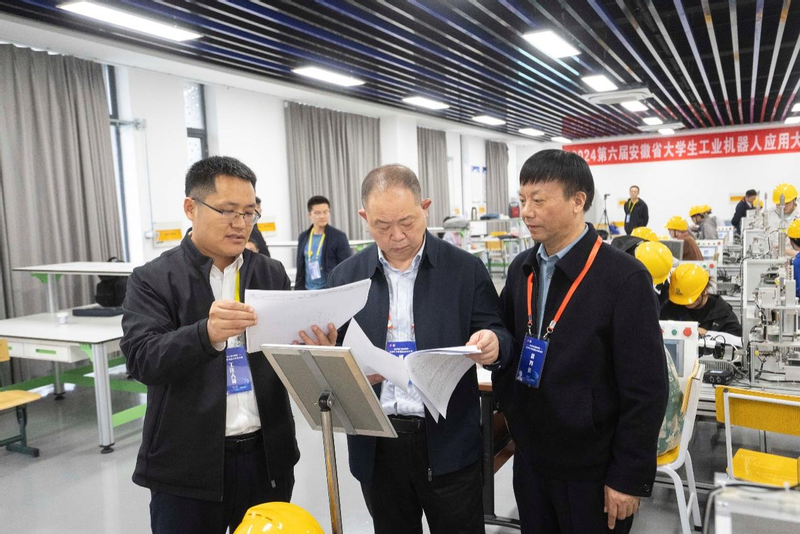 据悉,安徽省大学生工业机器人应用大赛已连续举办六届,吸引了省内近20所高校参赛,参赛学生涵盖机器人工程、人工智能、智能制造工程、电气工程、自动化、计算机等学科专业。大赛始终坚持应用特征和产教融合理念,紧贴生产实际,竞赛内容包括硬件环境搭建、系统故障排除、编程与调试和综合素养,综合考查参赛选手机器人编程、视觉检测、机电控制等能力,为全省高校师生提供了一个良好的交流学习平台,为机器人产业人才培养做出了积极贡献。