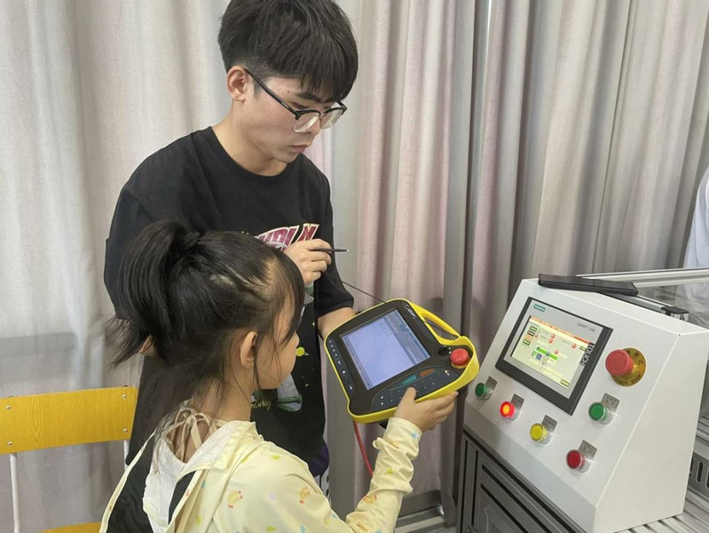 自与万春社区开展“1+15”共建以来,欧美av 积极探寻“党建引领+团建赋能”工作模式,将志愿服务与专业学科深度融合,将社区实践与专业认知高度结合,先后多次赴万春社区党群服务中心、育文学校等开展机器人科普志愿服务活动,通过精彩的工业机器人演示、亲身操作体验、机器人拆装实践及装配平台合作展示,引导小学生们深刻了解了机器人的基本原理、工作方式及内部构造。同时,学院邀请万春社区的孩子们来校开展机器人科普实践体验活动,通过工业机器人码垛实验演示、机器人互动体验,参观发明协会部分小发明、小制作等,激发他们对科技的浓厚兴趣与探索欲,培养动手实践、团队协作及未来科技发展的责任感与使命感。