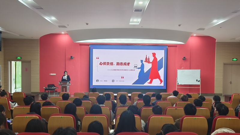 最后,李文江作总结发言。他对以上同学取得的优异成绩给予了高度评价,希望同学们以他们为榜样,珍惜大学学习机会。树立远大目标、付诸实际行动、高效自律、执着追求成功,相信大家一定能不断取得进步,成为国家的栋梁之材。她还讲述了人工智能专业2024届毕业生、国家励志奖学金获得者、校十佳大学生袁政卿的励志求学之路,现场同学深受鼓舞。