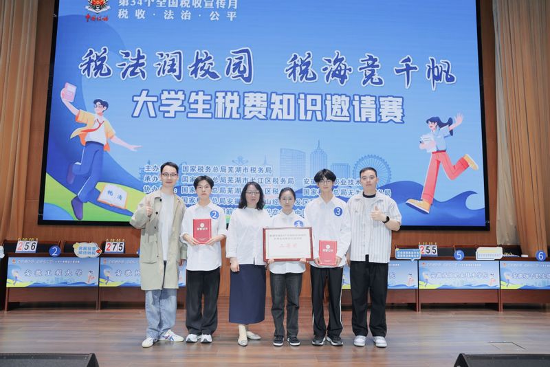 4月9日,芜湖市第34个全国税收宣传月大学生税费知识邀请赛在安徽商贸职业技术学院圆满落幕,来自安徽师范大学等6所高校同台竞技,欧美av 学子在激烈的竞争中脱颖而出,最终荣获二等奖。