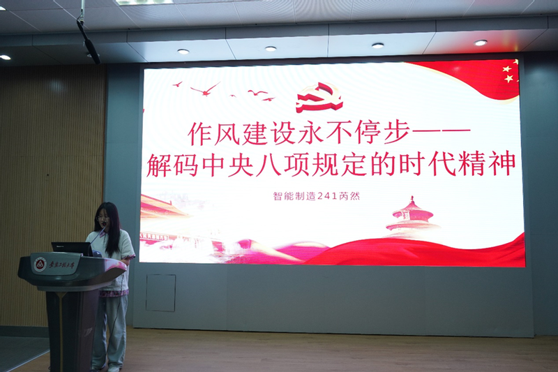 决赛共有三个环节组成。在团支部风采环节,10个团支部的宣讲人分别从支部建设、政治理论学习、支部成果等方面,对团支部进行了详细的介绍,不仅体现了团支部的凝聚力和战斗力,也充分展现了学院团员青年的创意和才华。在中场答题环节,团支部代表根据抽签的选题进行作答,从党史团史到重要指示、精神,精彩的回答引起现场阵阵掌声,充分展现了团支部对党团知识的充分学习和深度思考。在主题微团课宣讲环节,各团支书自行选题,围绕党团的有关历史、规定、精神等,紧扣时代主题,结合团支部的实际工作,开展宣讲。充分展示了学院团员青年的蓬勃朝气和奋发有为的精神风貌。