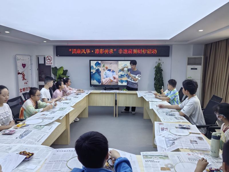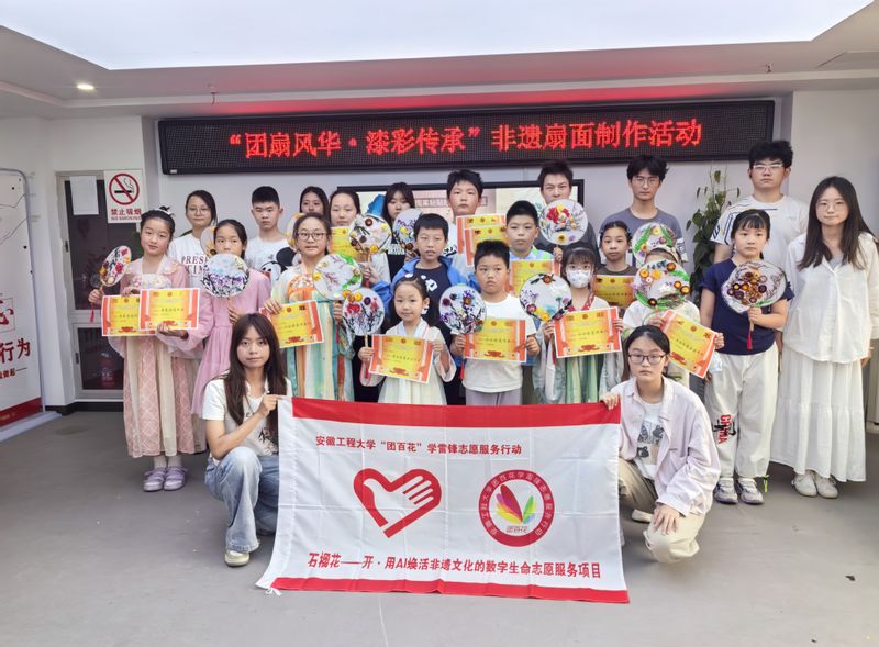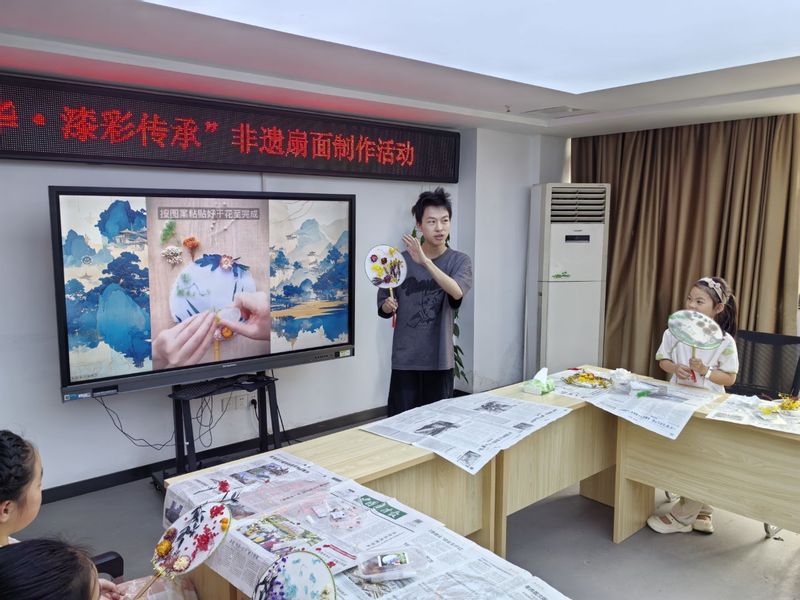 最后,志愿者特别介绍了团队研发成果——“AI+非遗小老师”智能体,小朋友们通过与这位虚拟老师实时互动,不仅能了解团扇的历史渊源、制作工艺,还能获取个性化的创作灵感。智能体生动有趣的讲解方式,为传统非遗文化注入科技活力,让孩子们在对话中感受古今交融的独特魅力。