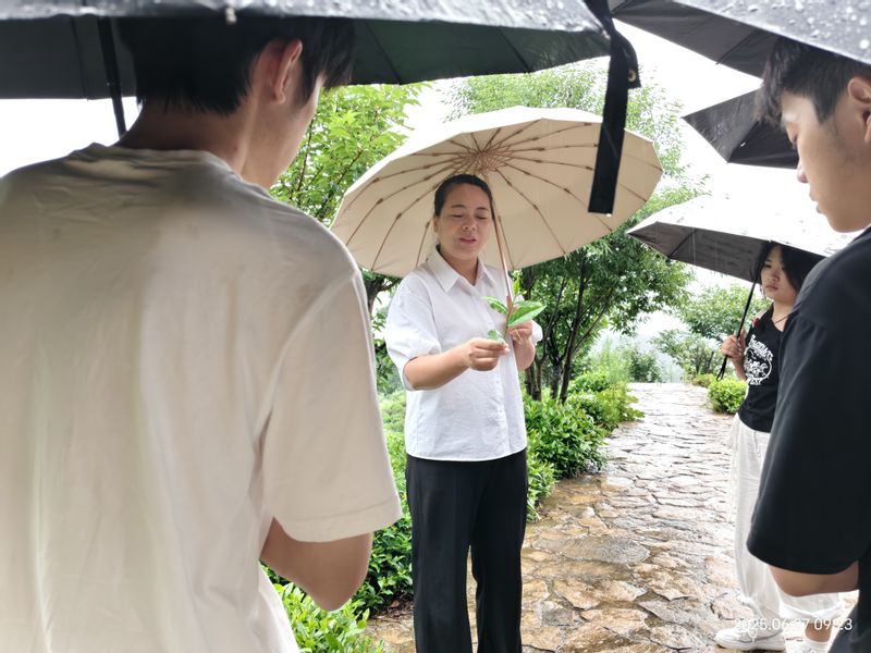 为探寻特色产业,实践团深入大化坪镇金鸡山神茶园。在镇领导引导下,来到了金鸡山神茶园,行走于翠绿茶垄,了解茶树种植、采摘技艺及传统制茶工艺。拜访霍山“黄芽”“黄大茶”“黄小茶”非遗传承人程先琼,聆听黄茶历史与严苛工艺。学子们认识到茶产业对农民增收、乡村经济的重要作用,思考助力传统工艺焕新。