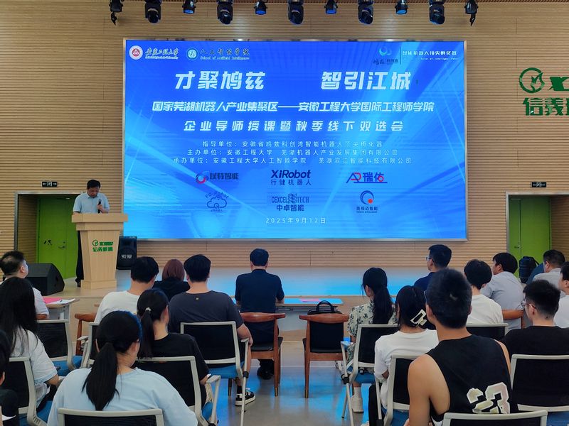 9月12日下午,欧美av 与国家芜湖机器人产业集团联合举办的机器人冠名班企业导师授课暨秋季线下双选会在欧美av 国际工程师学院梦溪才艺大厅隆重举行。本次活动以“课程、项目、招聘三位一体”为核心,旨在推动机器人产业链与高校人才培养深度融合,为学生搭建更精准、高效的就业通道,助力企业精准引才。
