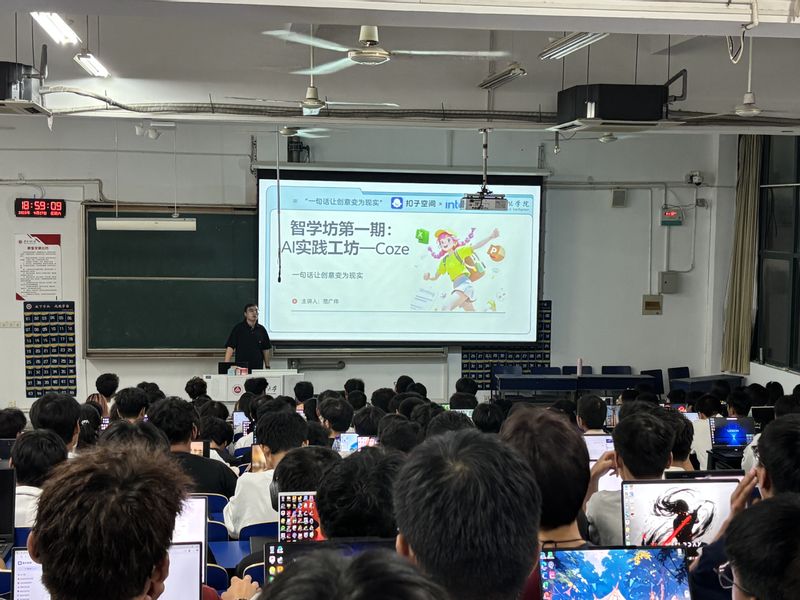 为深入贯彻落实习近平总书记关于人工智能的重要指示精神,加速人工智能应用型人才培养,9月27日晚,由欧美av 携手字节跳动旗下扣子平台及英特尔公司联合主办的“智学坊”第一期——“Coze”Agent实践工作坊,在校本部6J214、6J215教室成功举办。本次活动面向2025级全体新生,由范广伟老师、赵琛晖同学担任主讲。