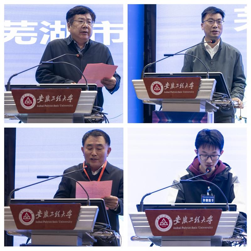 24日下午,大赛开幕式在国际工程师学院赤铸报告厅隆重举行。学校副校长王成军,芜湖市鸠江区人民政府副区长刘凯,芜湖市人才发展集团党委书记杨少华,全国政协委员、芜湖机器人产业发展集团董事长许礼进,埃夫特智能机器人股份有限公司董事长游玮,中科院合肥智能机械研究所葛运建教授,大赛裁判长、安徽理工大学张东速教授,大赛赛项裁判长、合肥工业大学曾亿山教授、合肥大学胡国华教授、安徽科技学院科技处处长陈丰教授,安徽省机器人学会秘书长王俊,以及来自省内外高校、企业的裁判专家和参赛师生出席开幕式。开幕式由教务处副处长朱贤东主持。