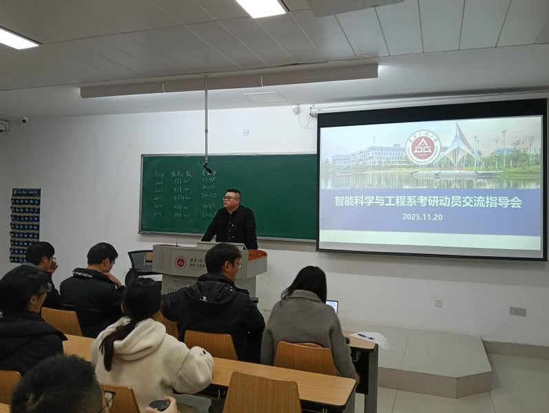 11月20日,智能科学与工程系在国际工程师学院图文信息中心X202教室召开考研指导交流会。本次活动面向智能科学与技术专业23级全体学生,旨在帮助同学们提前规划学习路径,明确考研方向,增强专业自信,提升备考效率。