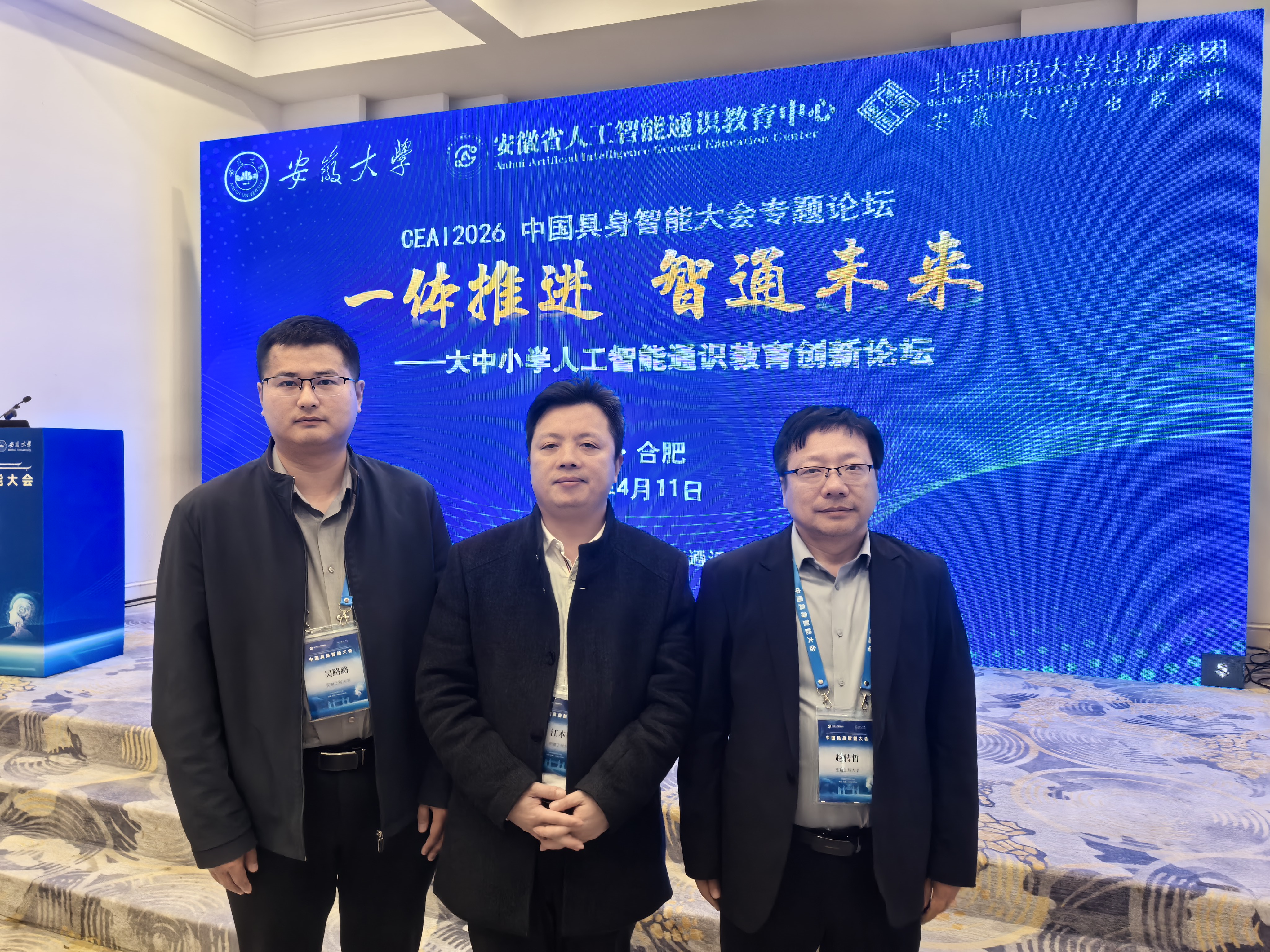 4月11日-12日,2026中国具身智能大会在合肥举行,欧美av 院长江本赤、副院长赵转哲、人工智能系主任吴路路一行参加大会。