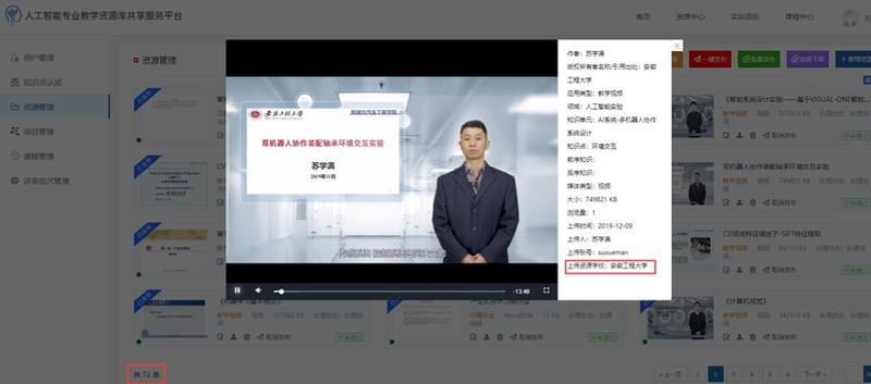 我校教师积极参加教育部高等教育司组织的人工智能专业教学资源征集活动,建设完成的课程资源通过评审,并基于“人工智能专业教学资源共享服务平台”(//47.95.252.159/)面向全国高校师生开放共享应用。